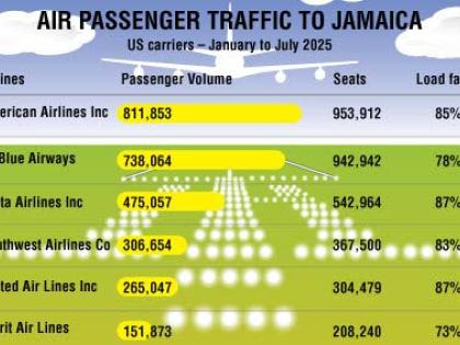 American Airlines led all US carriers in passenger volume to Jamaica during the first seven months of 2025, and did so with one of the lowest cancellation rates, according to United States federal…