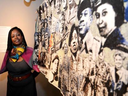 Paula Ogun Hector, creative director and curator of Tapestry of Black Britons, is pictured alongside one of the specially embroidered panels. The thought-provoking exhibition, featuring images of…